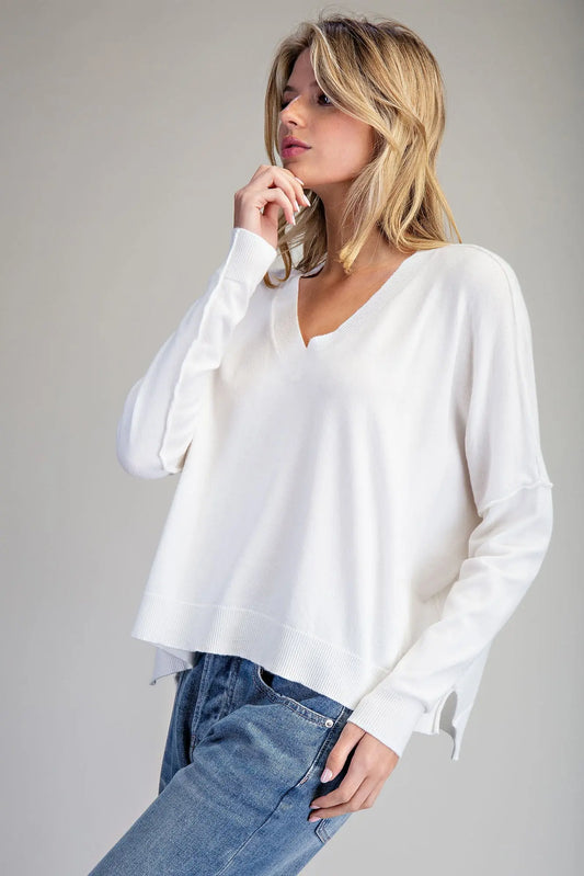 SOFT V-NECK LONG SLEEVE KNIT SWEATER