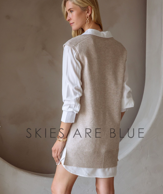 V-NECK SPARKLE SWEATER WITH PEEK A BOO WHITE BLOUSE