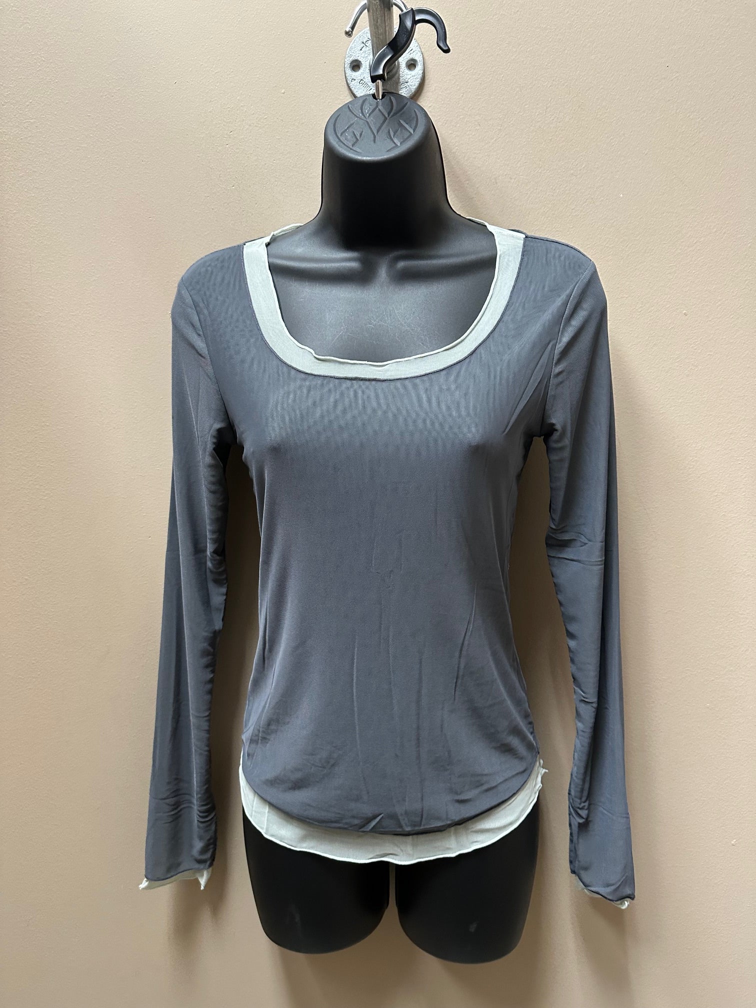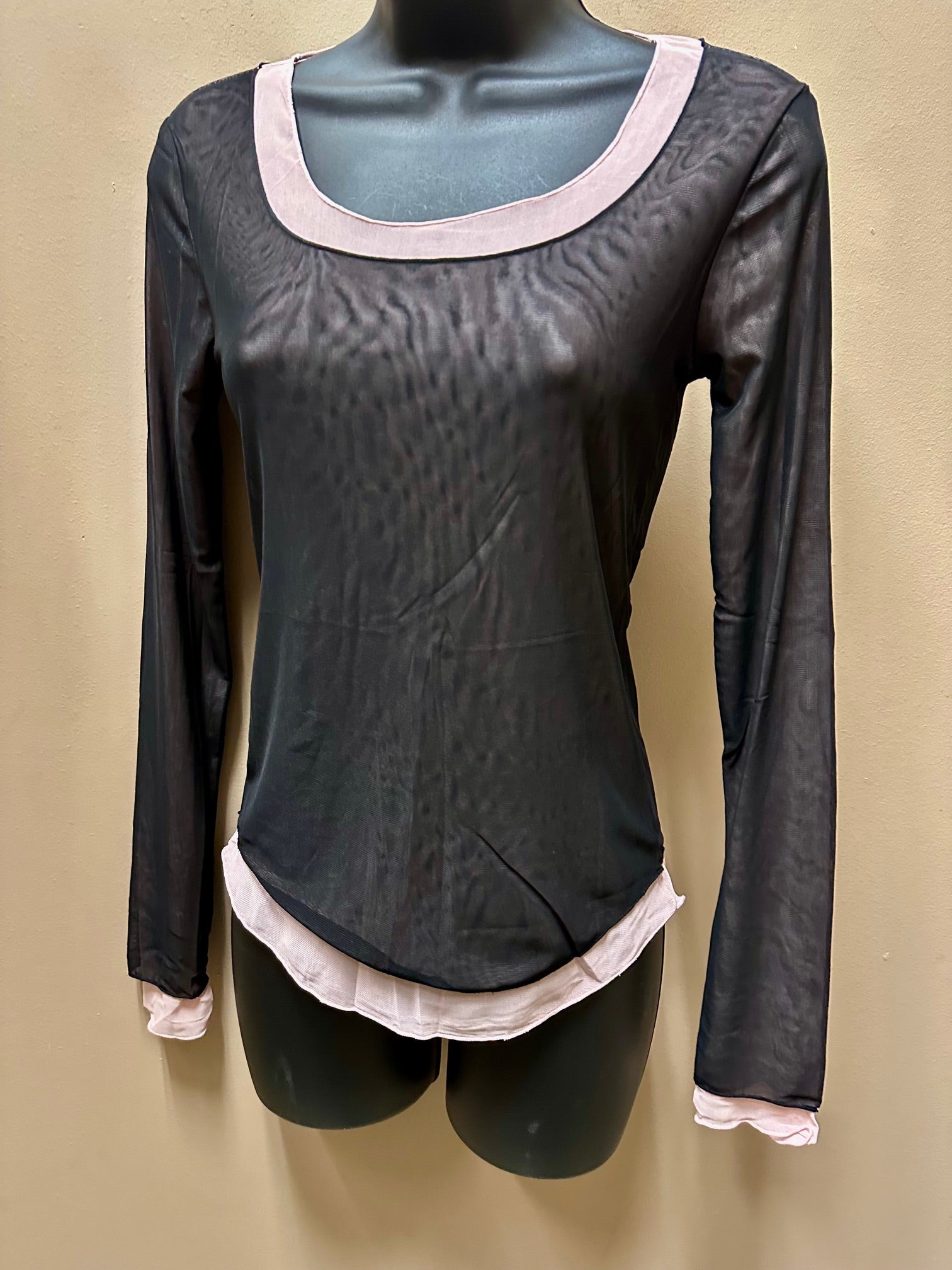 DOUBLE LAYER SCOOP NECK MESH TOP