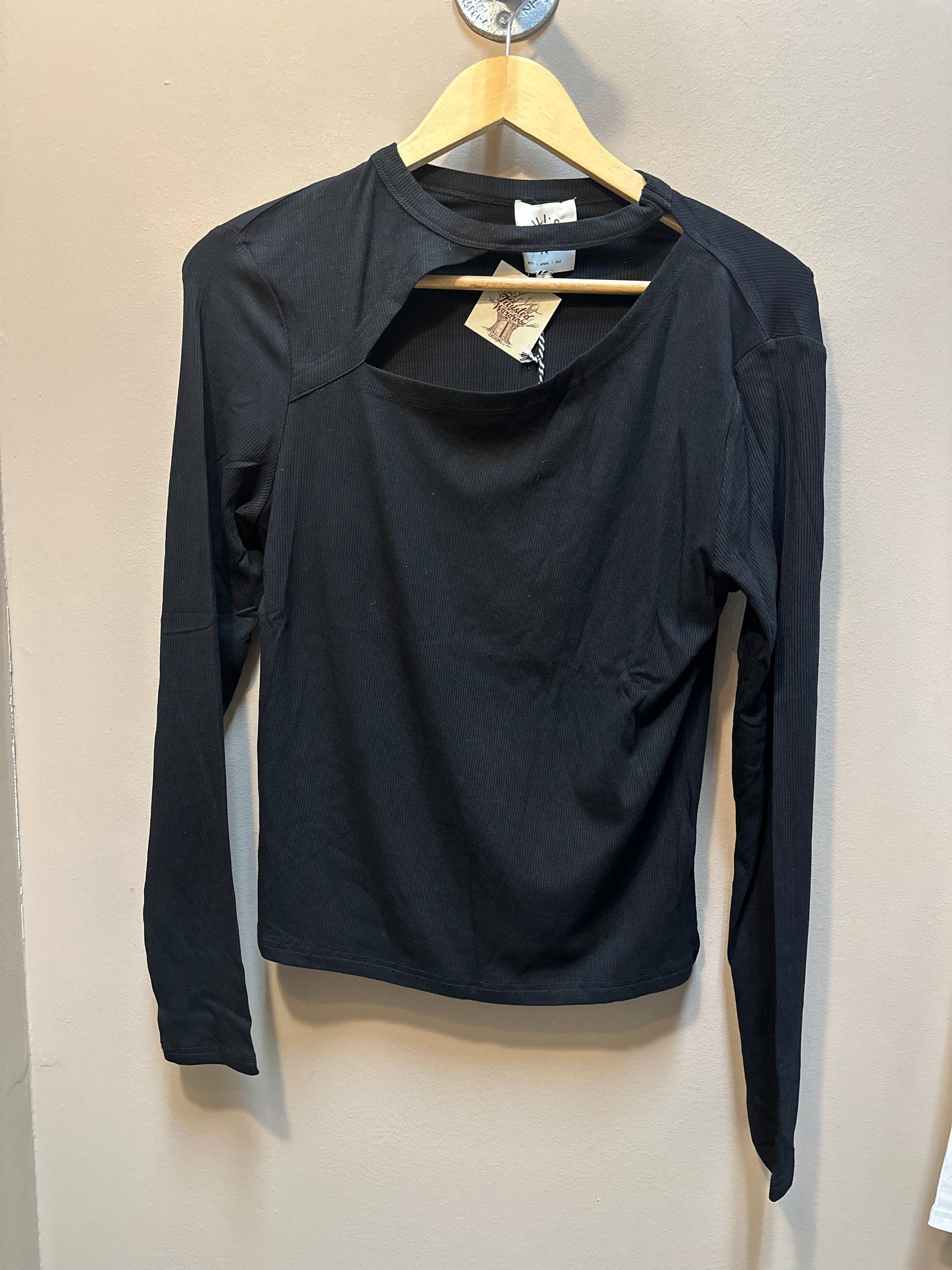 Details: Long sleeve ribbed top w/ front cut out.