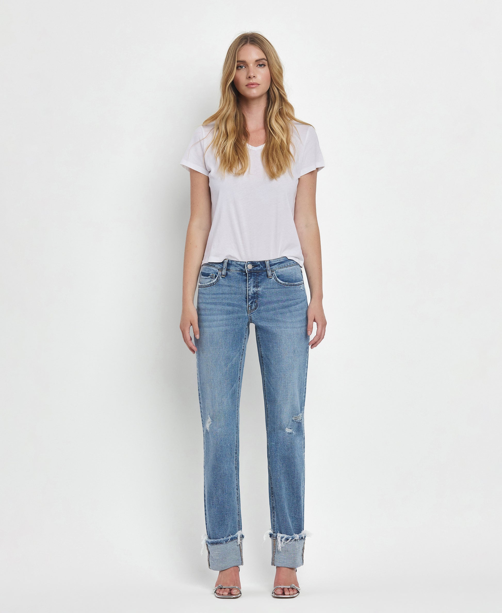 MID RISE CUFFED DENIM STRAIGHT LEG FULL LENGTH