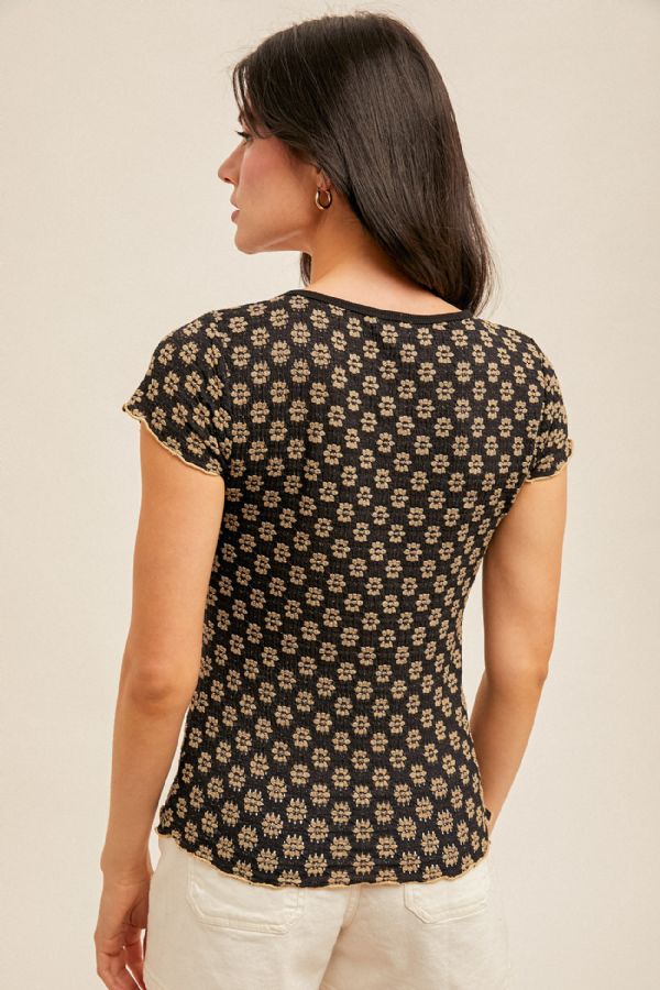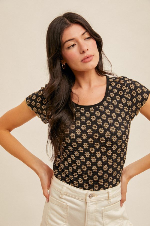 SHORT SLEEVE LACE CABBAGE HEM TEE